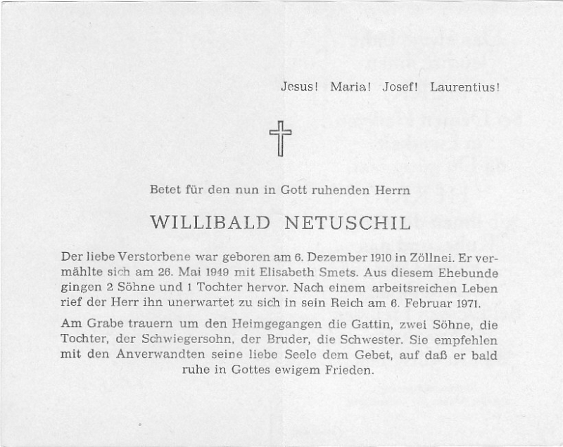 ∞ 26.5.1949 Elisabeth Smets; 3 K. |