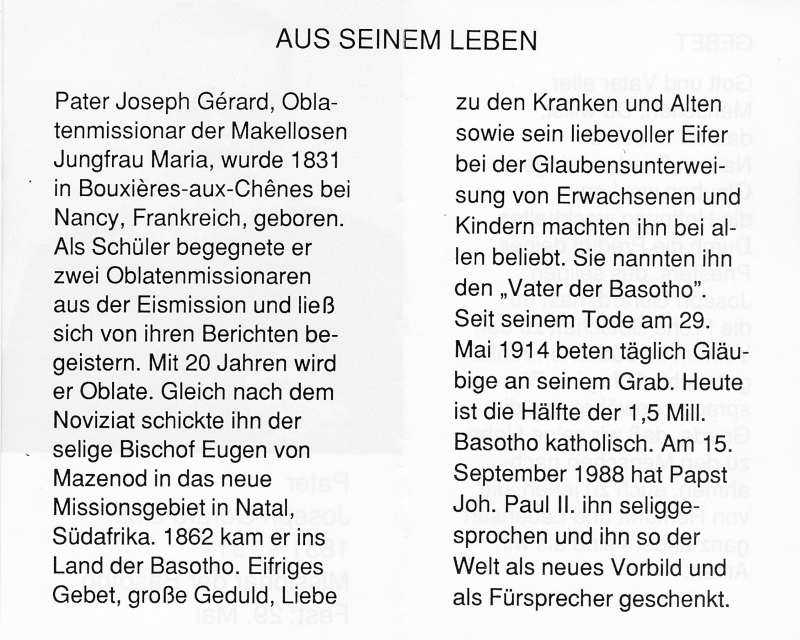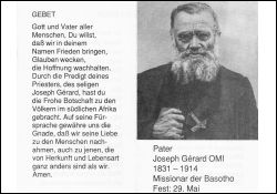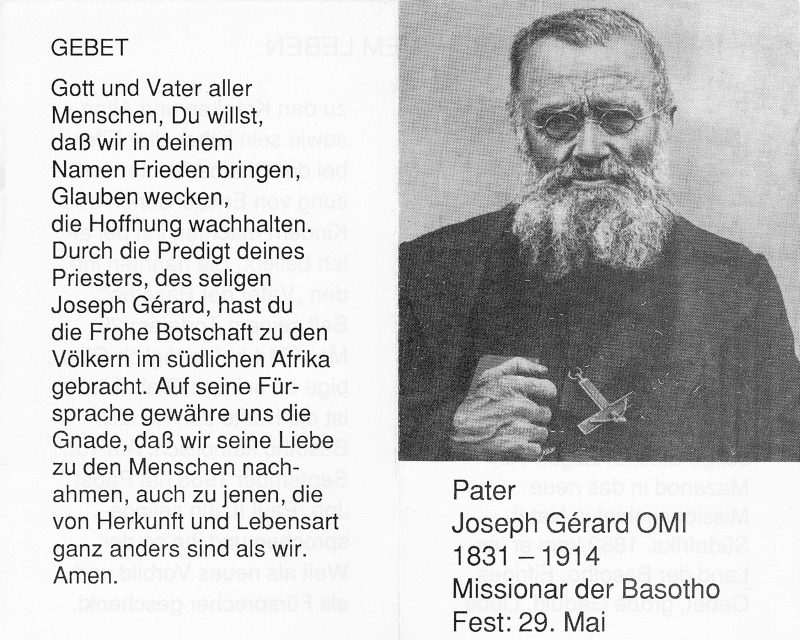 Missionar der Basotho; mit 20 J. wurde er Oblate; zuerst im Missionsgebiet Natal, Südafrika; 1862 ins Land der Basotho; am 15.9.1988 seliggesprochen |