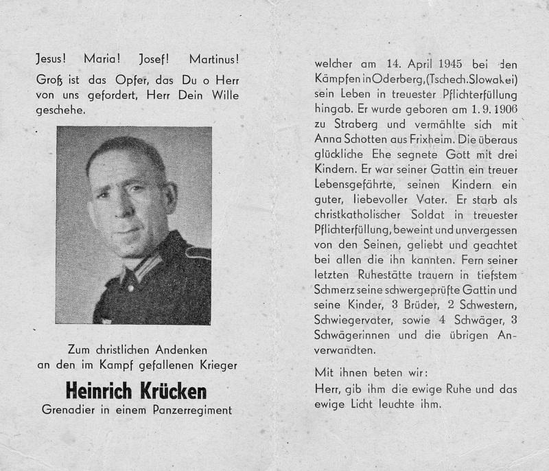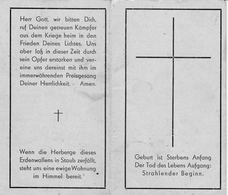 | Gefallener 2. Weltkrieg; ∞ Anna Schotten aus Frixheim; 3 K. |