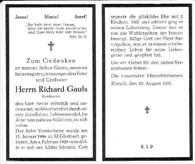 Nahezu 50 J.; ∞ 4.2.1929 Käthe Schmitz; 2 K. |