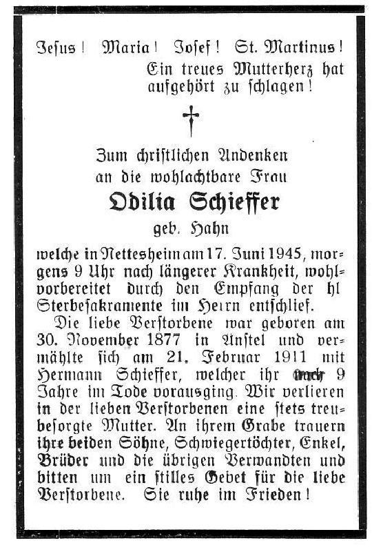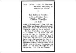 | ∞ 21.2.1911 Hermann Schieffer, † vor 9 J.; 2 überlebende Söhne |