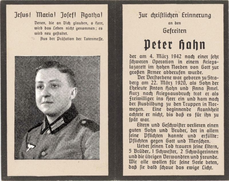 | Gefallener 2. Weltkrieg; Krankheit machte eine schwere Operation notwendig |