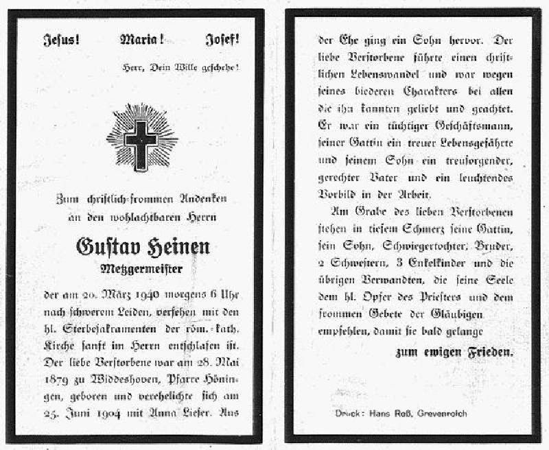 | ∞ 25.6.1904 Anna Lieser; 1 Sohn; Metzgermeister; Druck in Grevenbroich |