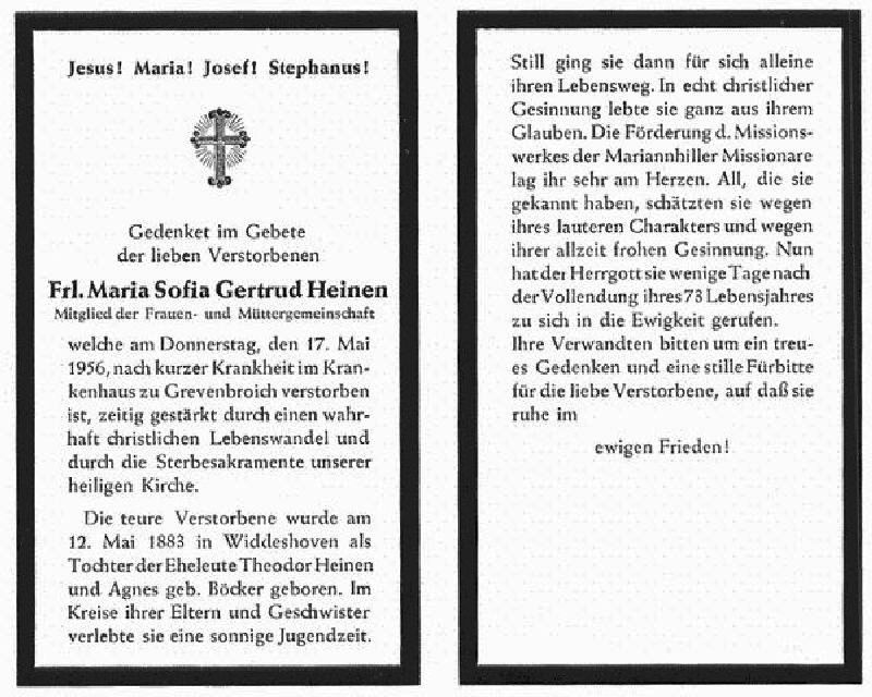 | Fräulein; Eltern: Theodor Heinen u. Agnes geb. Böcker |