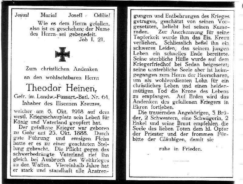 | Gefallener 1. Weltkrieg; seit Anfang des Krieges Soldat; Soldatenfriedhof b. Sedan |