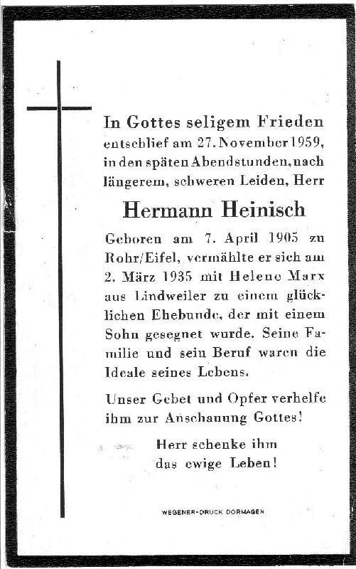 | ∞ 2.3.1935 Helene Marx aus Lindweiler; 1 Sohn |