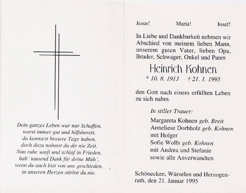 ∞ Margareta Breit; Kinder; Familienangehörige auch in Würselen, Herzogenrath |