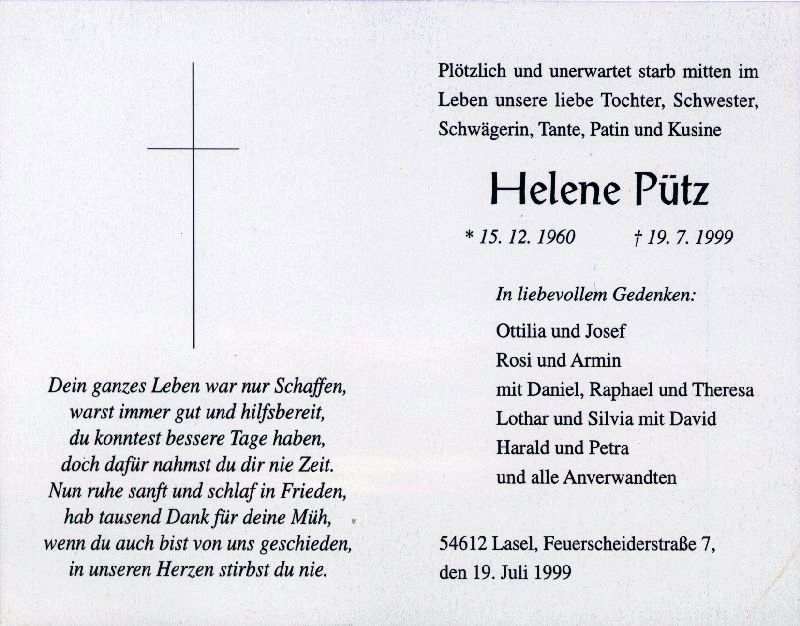 Eltern: Josef und Ottilia Pütz; deren Wohnort: Lasel |