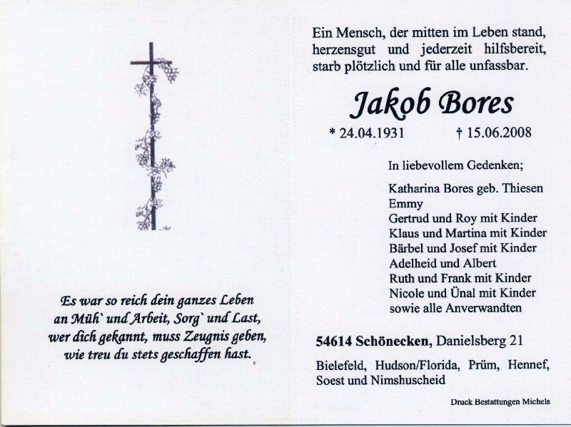 ∞ Katharina Thiesen; Familienangehörige in: Bielefeld, Hudson/Florida, Prüm, Hennef, Soest, Nimshuscheid |