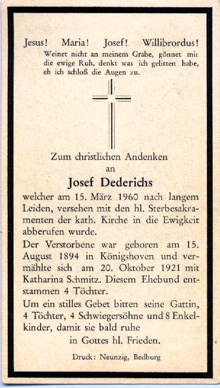 ∞ 20.10.1921 Katharina Schmitz; 4 Töchter; Druck in Bedburg/Erft |