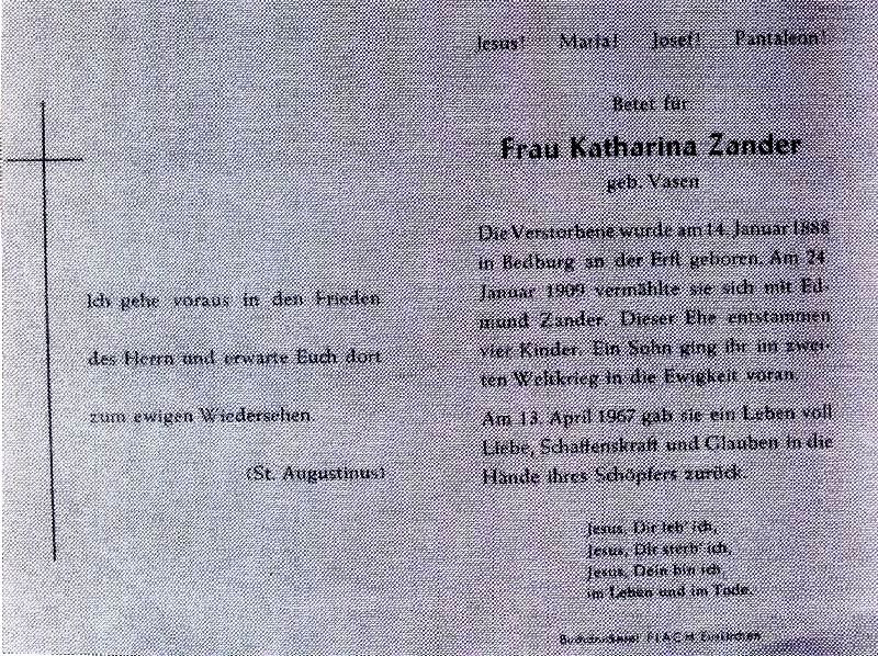 ∞ 24.1.1909 Edmund Zander; Druck in Euskirchen |