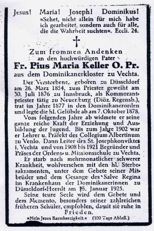 | Priesterweihe Innsbruck 30.7.1876; Kommorantpriester zu Neuenburg, Diöz. Regensburg; 1877 Eintritt in Dominikanerorden, Gelübde 7.10.1878; bis 1902mLehrer u. Präfekt des Collegium Albertinum in Venlo; Danach Leiter des St. Joseph-Konviktes in Vechta; 1908-21 Begründer u. Präses der Ordens- u. Missionsschule zu Vechta |