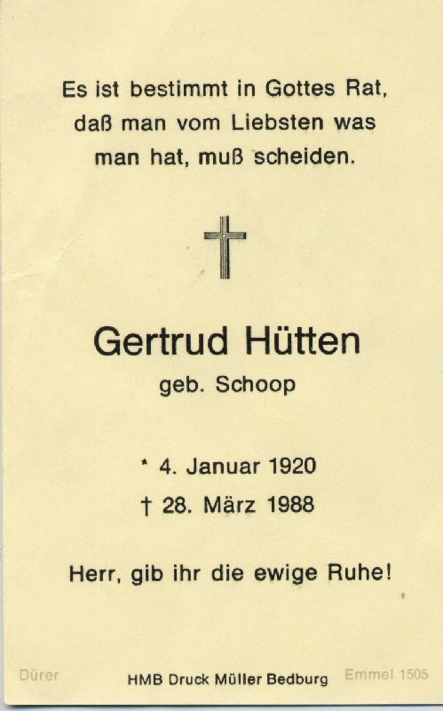 Hütten, geb. Schoop