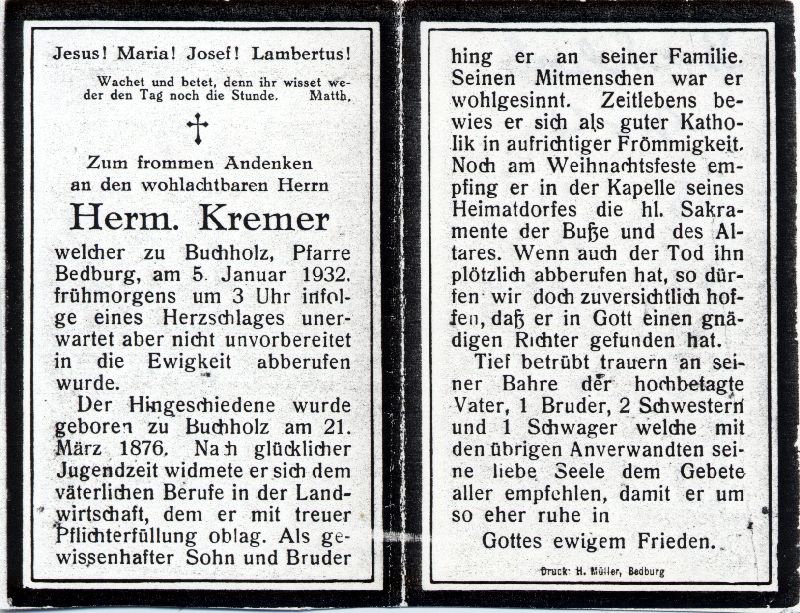 Buchholz, Pfarre Bedburg | | Sterbedatum: |