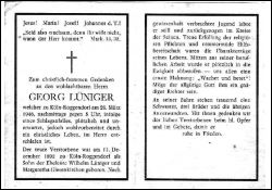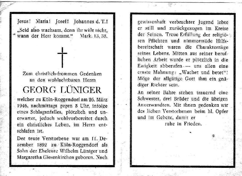 | Dchlaganfall; Eltern: Wilhelm Lüniger u. Margarethe geb. Giesenkirchen |