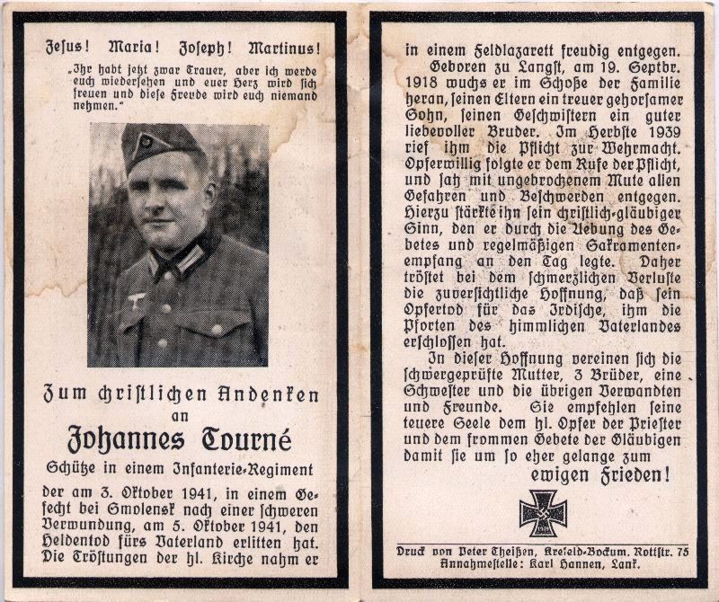 Gefallener 2. Weltkrieg; Herbst 1939 Einberufung; |