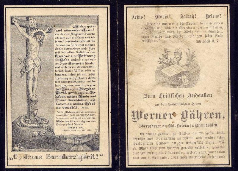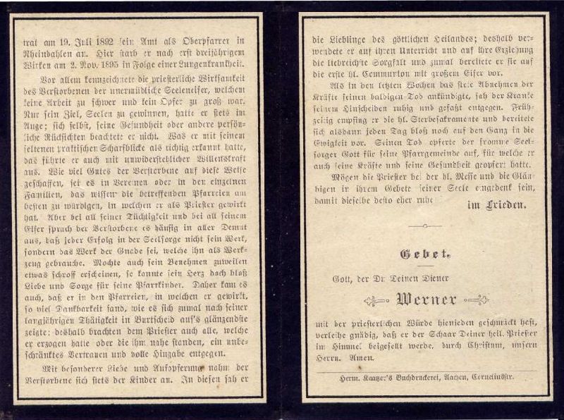 Priesterweihe 28.3.1868; Kaplan in Uerdingen; 4.9.1871 nach Burtscheid; 19.7.1892 Oberpfarrer in Rheindahlen; Tod infolge einer Lungenkrankheit; |