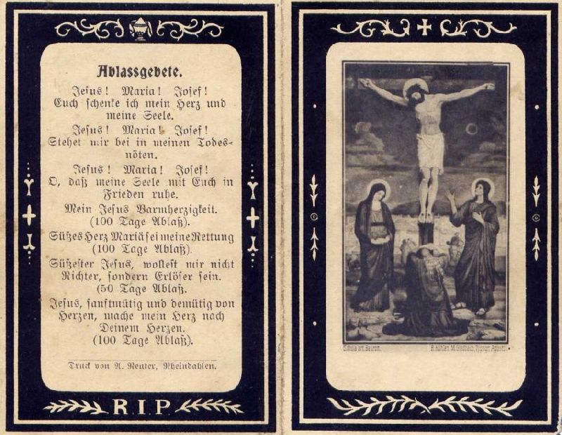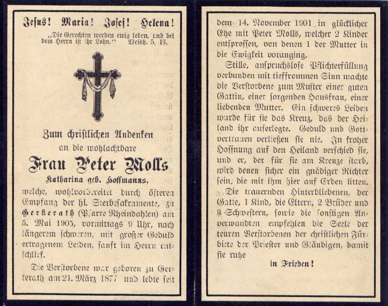 ∞ 14.11.1901 Peter Molls; 2 K., davon 1 †; schweres Leiden |