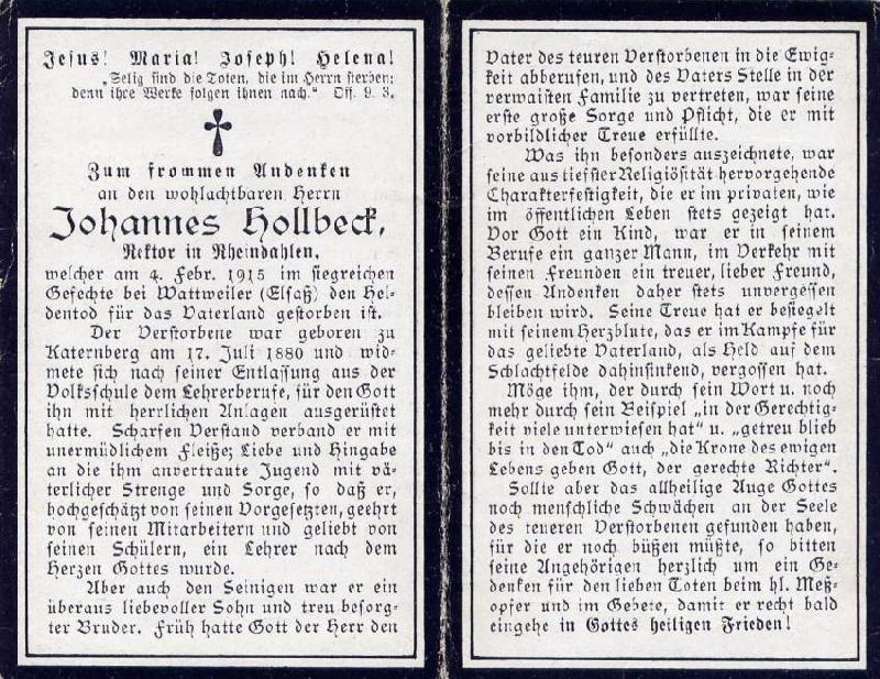 Gefallener 1. Weltkrieg; Lehrerberuf; Rektor in Rheindahlen; musste früh den Vater in der Familie ersetzen; |