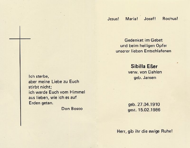 Eßer, geb. Jansen, verw. von Dahlen | Vorname: |