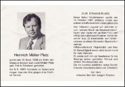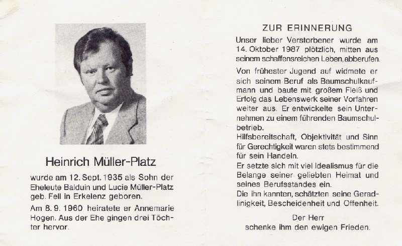 Eltern: Balduin u. Lucie Müller-Platz geb. Fell; ∞ 8.9.1960 Annemarie Hogen; 3 Töchter; Baumschulkaufmann; eigener Baumschulbetrieb; |