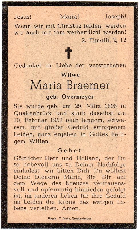Braemer, geb. Overmeyer | Vorname: |