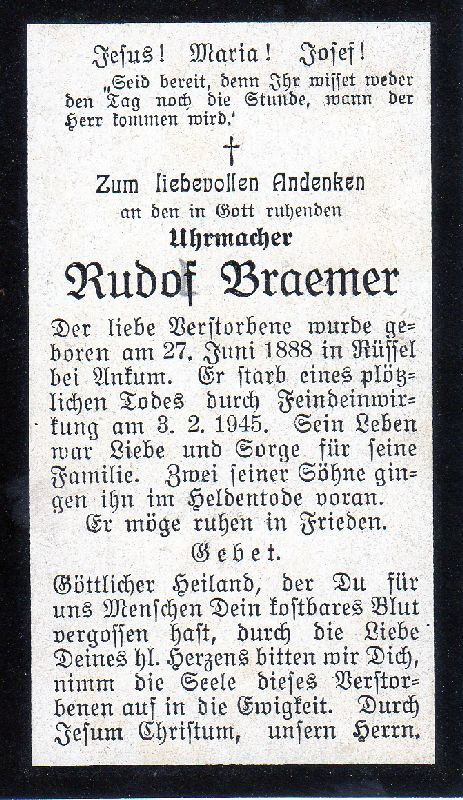 Opfer 2. Weltkrieg: Tod durch Feindeinwirkung; 2 seiner Söhne im 2. Weltkrieg gefallen; Uhrmacher |