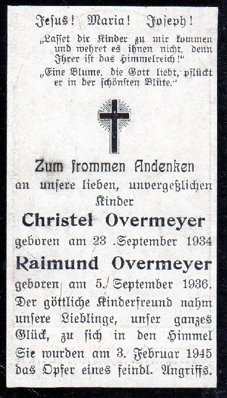Opfer 2. Weltkrieg: Opfer eines feindlichen Angriffs (zusammen mit Bruder Raimund) |