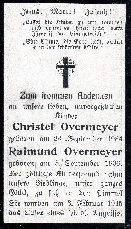 Opfer 2. Weltkrieg: Opfer eines feindlichen Angriffs (zusammen mit Schwester Christel) |
