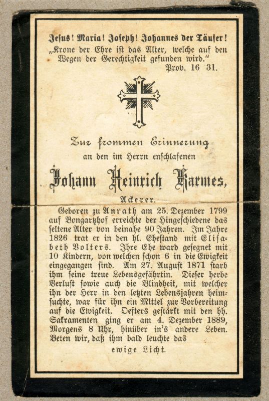 | Ackerer; ∞ 1826 Elisabeth Volters, † 27.8.1871; 10 K., davon 6 †; Wohnort: Willich |