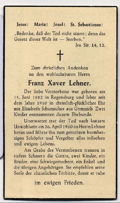 ∞ 1910 Elisabeth Schumacher aus Gymnich; 2 überlebende Kinder |