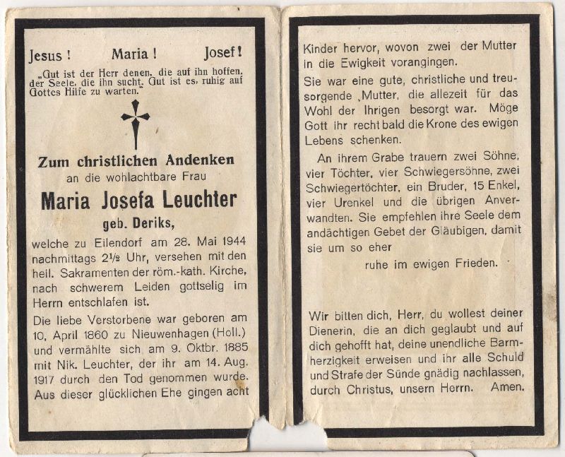 ∞ 9.10.1885 Nikolaus Leuchter, † 14.8.1917; 8 K., davon 2 † |