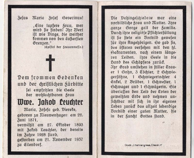 ∞ 27.10.1893 Jakob Leuchter, † 1928; 4 überlebende Kinder |