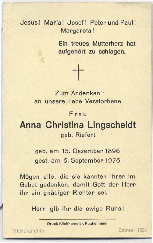 Lingscheidt, geb. Riefert | Vorname: |