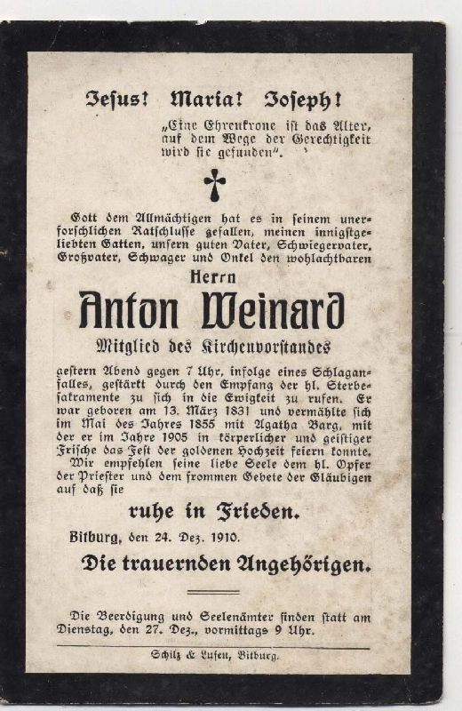 ∞ Mai 1855 Agatha Barg; 1905 Goldhochzeit |