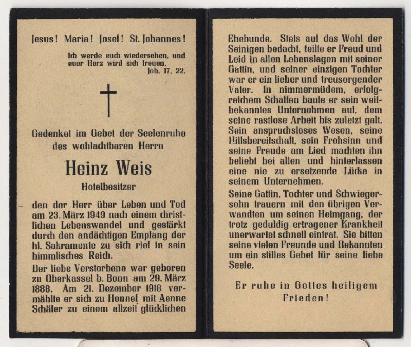 Hotelbesitzer; ∞ 21.12.1918 in Honnef Aenne Schäfer; 1 Tochter |