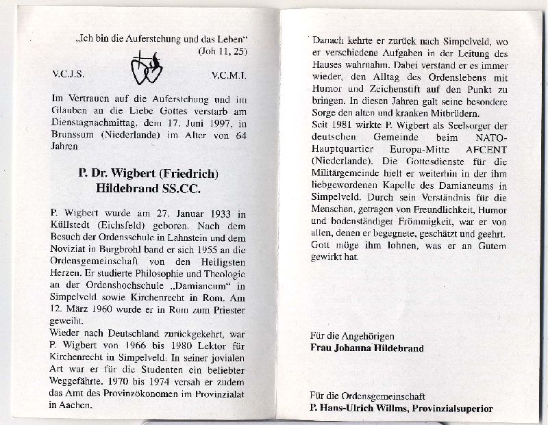 Wigbert, Dr., SS.CC., geb. Hildebrand | Vorname: |