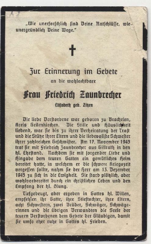 Zaunbrecher, geb. Zitzen | Vorname: |