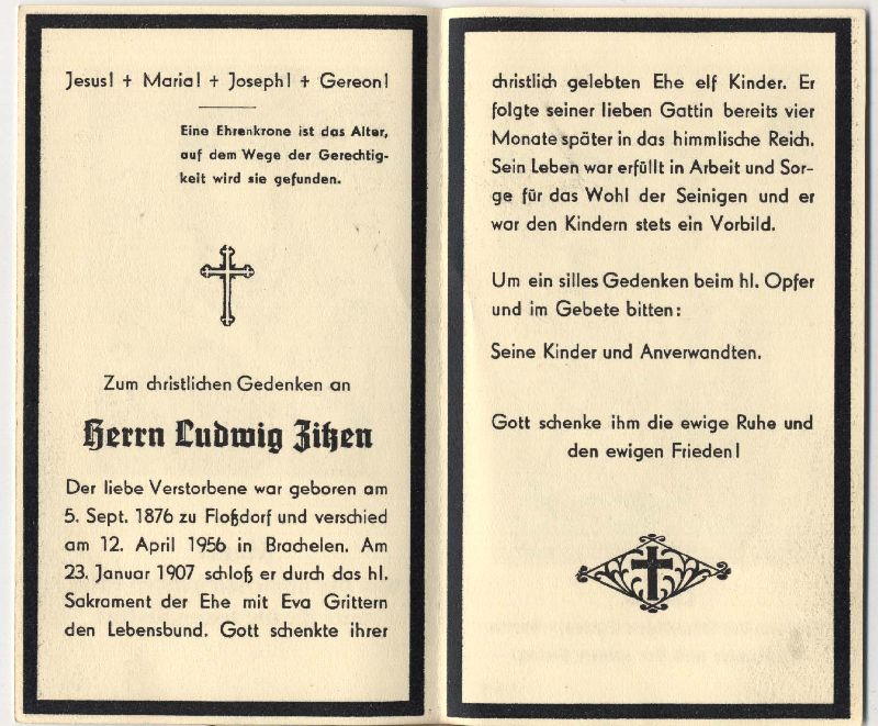 ∞ 23.1.1907 Eva Grittern, † vor 4 Monaten; 11 K. |