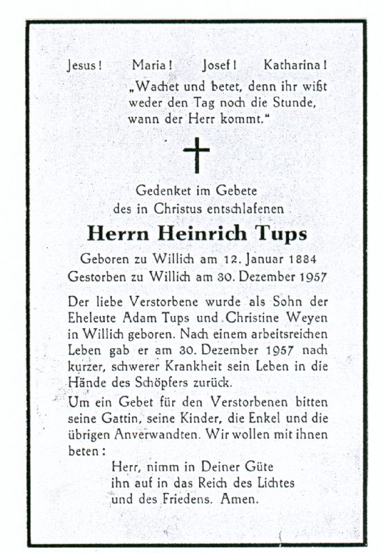 Eltern: Adam Tups u. Christine geb. Weyen; Kinder |