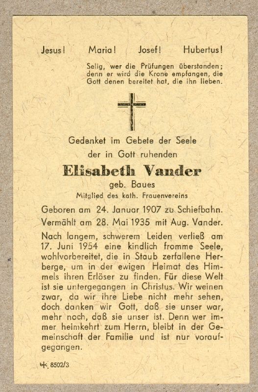 ∞ 28.5.1935 August Vander; Mitgl. kath. Frauenverein |