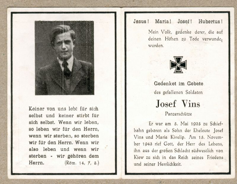 Gefallener 2. Weltkrieg; Eltern: Josef Vins u. Maria geb. Kivelip |
