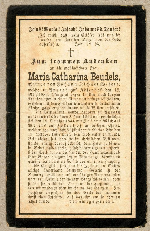 ∞ 18.10.1844 Johann Michael Wefers auf Jökenhof in Anrath, † 13.10.1867; Kinder |