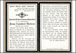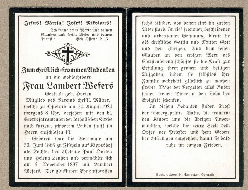 Eltern: Paul Horten u. Helena geb. Lentzen; ∞ 6.11.1897 Lambert Wefers; 6 K., davon 1 früh †; |