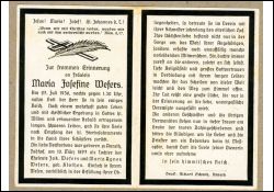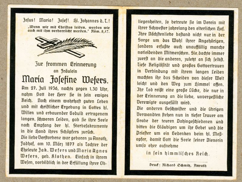 Langes, schweres Leiden; Eltern: Jakob Wefers u. Maria Agnes geb. Klothen; betreute mit ihrer Schwester den elterlichen Hof; |