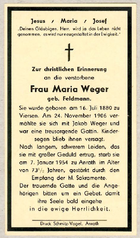 ∞ 24.11.1906 Jakob Weger; kinderlos |