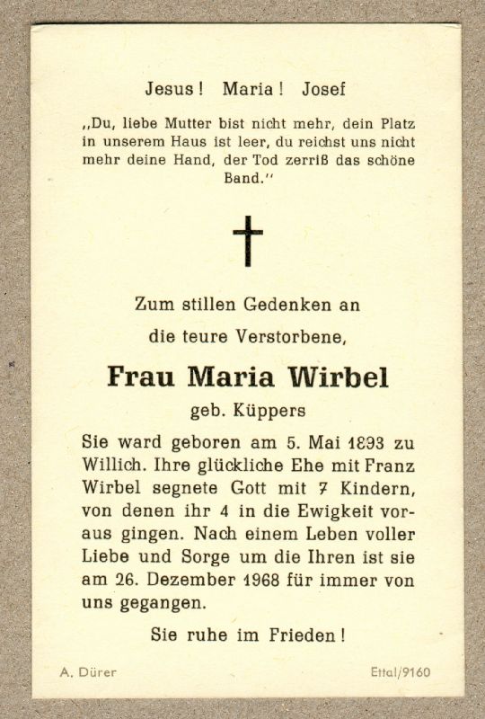 | ∞ Franz Wirbel; 7 K., davon 4 † |