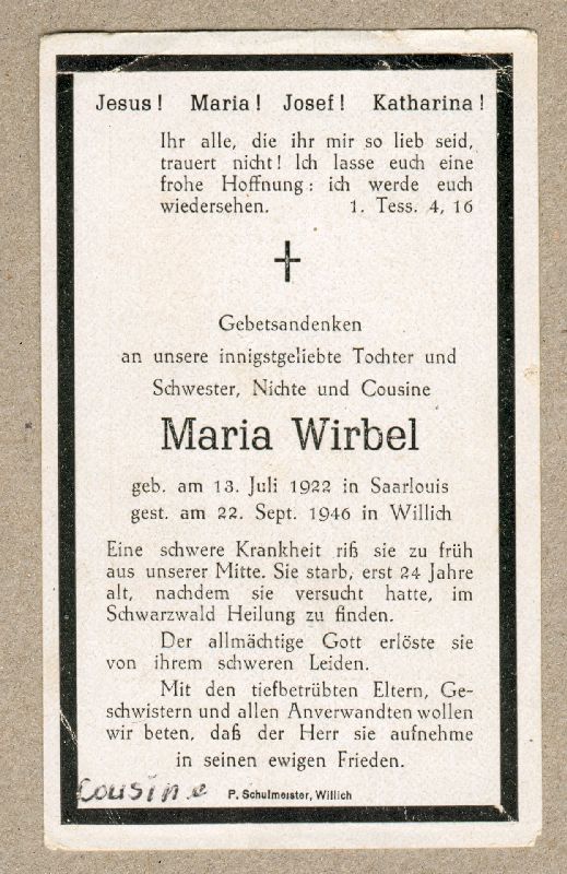 | 24 J.; schwere Krankheit; vergeblich hatte sie im Schwarzwald Heilung gesucht |