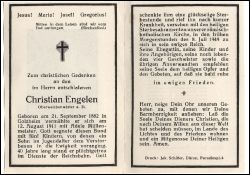 | Wohnort: vermutl. Golzheim; ∞ 12.8.1911 Adele Müllenmeister; 5 K., davon 1 jugendl. †; im Dienst der Reichsbahn: Oberweichenwärter a.D.; Druck in Düren |