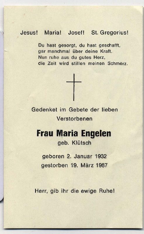 Engelen, geb. Klütsch | | Vorname: |